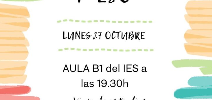 Os informamos de que el próximo lunes 27 de octubre a las 18.30, presentaremos la Asesoría Emocional y la Asociación de Voluntariado en el aula B1 del IES. Está dirigida a todas las familias...