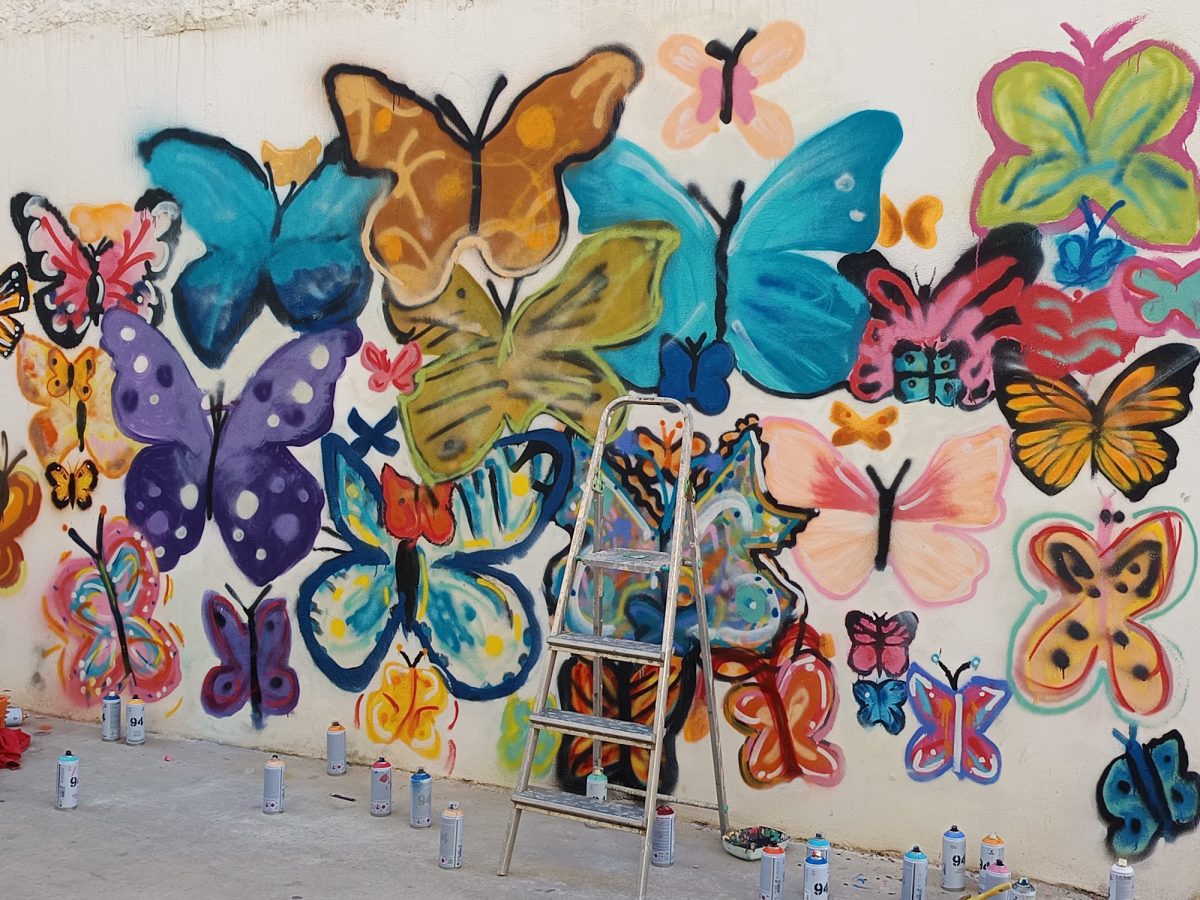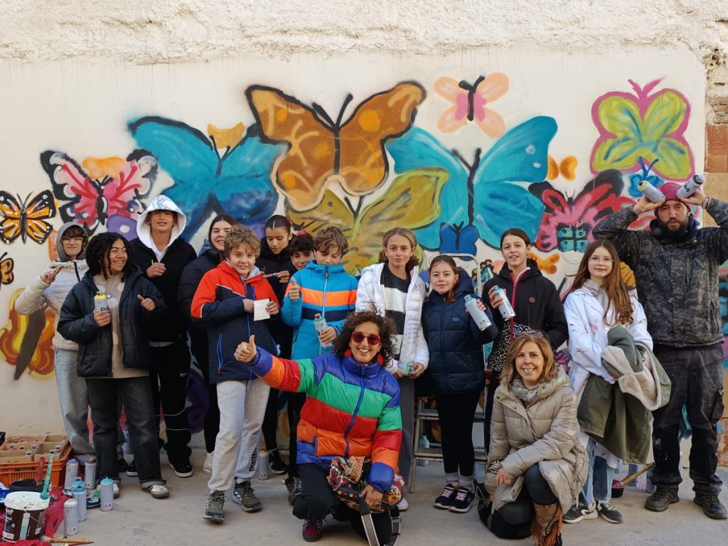 Este año el Ayuntamiento de Sariñena nos ha invitado a participar en la realización de un mural conmemorativo.  Un grupo de alumnos/as del IES acompañados por sus profesoras ha colaborado con el autor, Edgar Monedero, pintando estas mariposas en la plaza del Ayuntamiento.
