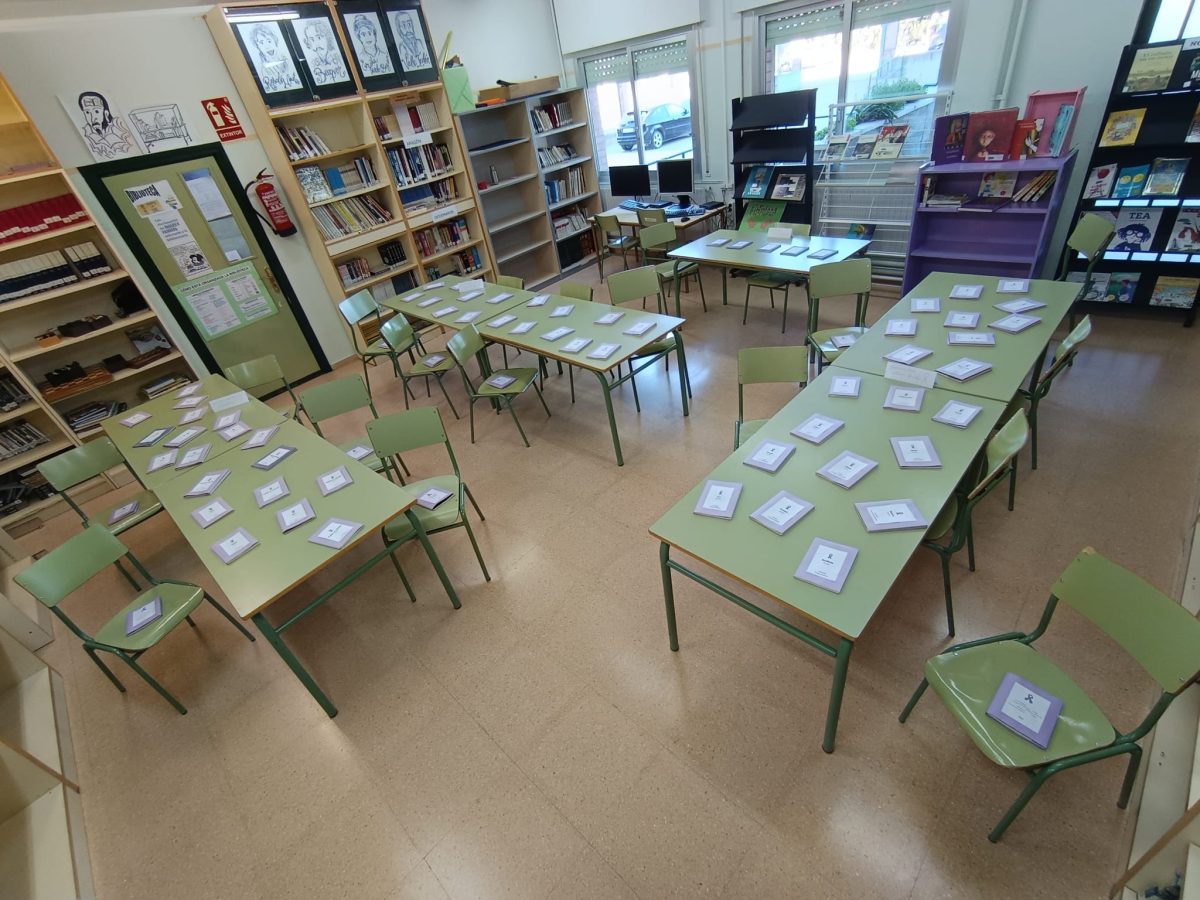 Desde la biblioteca hemos preparado una exposición especial: cada libro representa a una de las mujeres asesinadas este año por violencia de género. Junto a ellos, carteles explicativos que nos llaman a no mirar hacia otro lado.