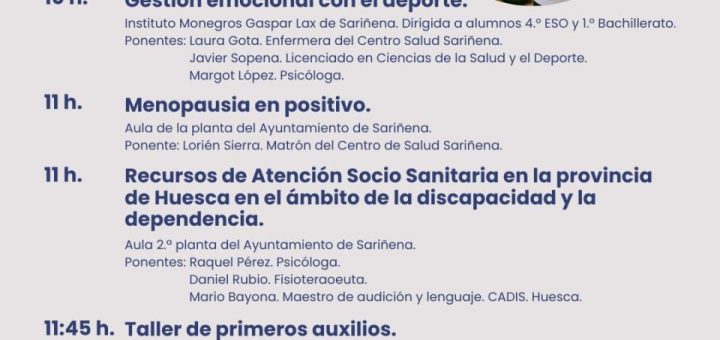 Damos difusión a la programación de la I Feria de Salud organizada en el área de salud del Centro de Sariñena. Pasadas las actividades programadas en Capdesaso y Lanaja (29 de septiembre y 1...