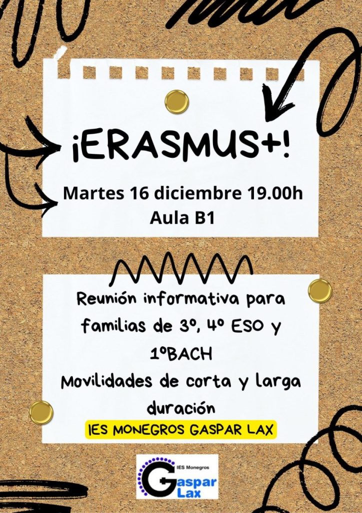 Reunión Erasmus+ 16 diciembre 19h por IES Monegros · diciembre 12, 2025 Comparte… Facebook Twitter Whatsapp Telegram Gmail